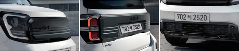 다크메탈 센터 가니쉬와 테일게이트 가니쉬, 전·후면 스키드 플레이트와 15인치 X-Line 전용 블랙 알로이 휠과 블랙 엠블럼 등 다크 포인트 컬러를 적용해 Ray X-Line에 단단한 인상을 더합니다.